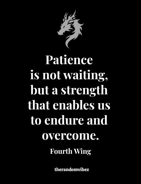 - “Patience is not passive waiting, but a strength that enables us to endure and overcome.” ― Rebecca Yarros, Fourth Wing
