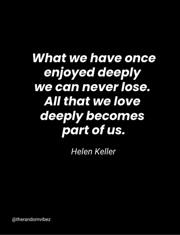 8. “What we have once enjoyed deeply we can never lose. All that we love deeply becomes part of us.” – Helen Keller