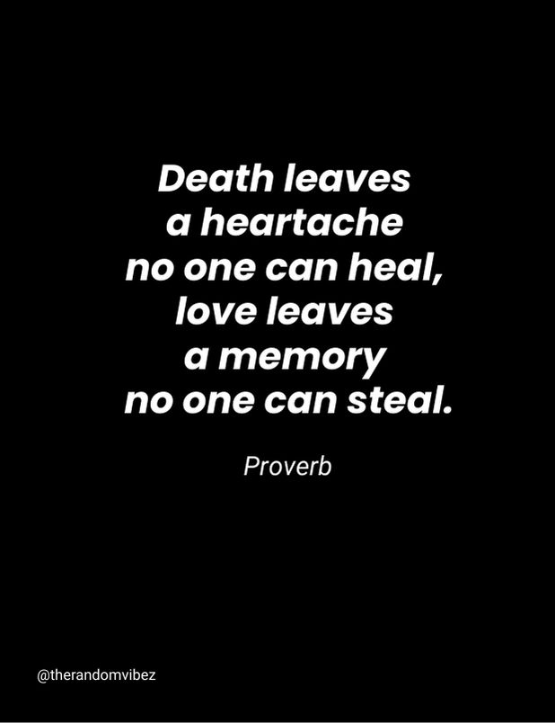 7. “Death leaves a heartache no one can heal, love leaves a memory no one can steal.” ― Proverb