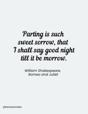 - “Parting is such sweet sorrow, that I shall say good night till it be morrow.” – Juliet