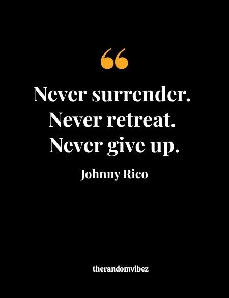 - “Never surrender. Never retreat. Never give up.” — Johnny Rico